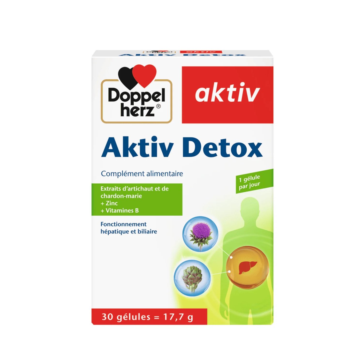 Doppelherz Aktiv Detox est un complément alimentaire conçu pour accompagner les fonctions naturelles de détoxification de l’organisme, en particulier via le soutien hépatique. La formule associe :
