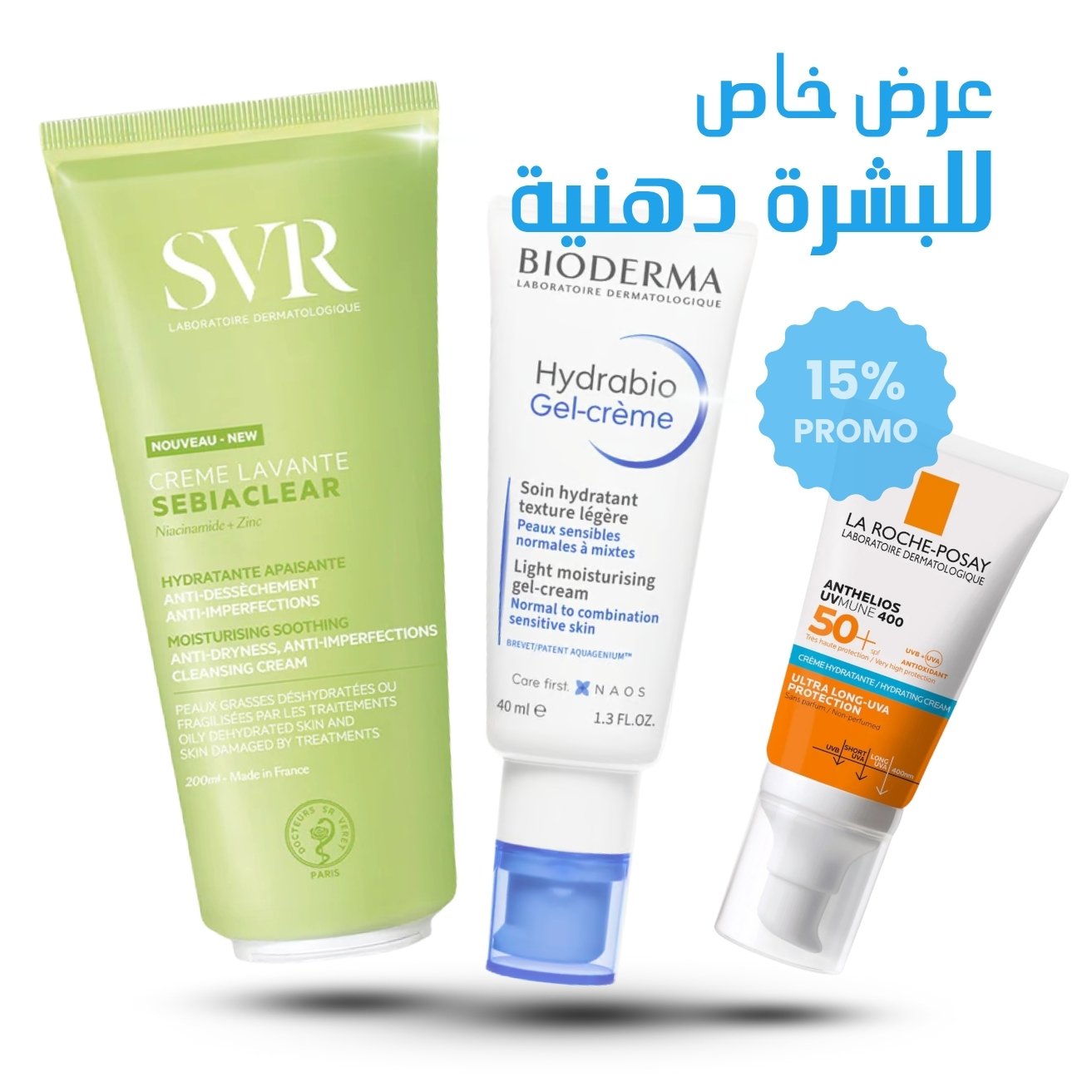 هذا الباك مخصص للبشرة الدهنية والمختلطة، يجمع بين غسول لطيف، كريم مرطب بخفّة وحماية يومية من الشمس،